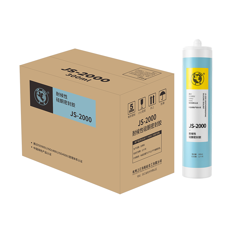 JS-2000 建筑用耐候硅酮密封膠是一種單組分、中性固化、專為建筑幕 墻中的耐候、防水密封而設計的??稍?5℃-40℃條件下輕易地擠出使 用,依靠空氣中的水分固化成優異、耐用的彈性硅酮橡膠。